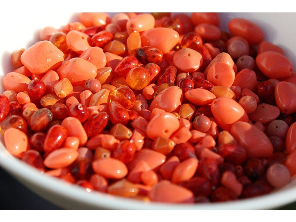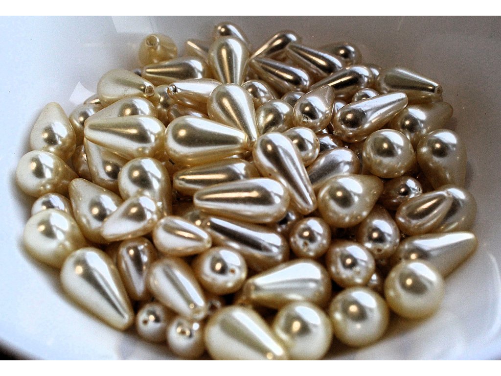 - skleněné perle nejrůznějších tvarů, barev a velikostí.