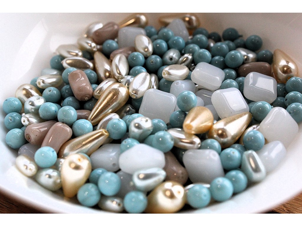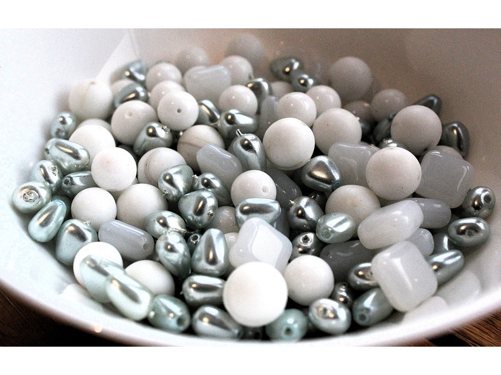 Jedná se o exkluzivní nabídku, neboť skleněné perly kuličky nejsou jinde na trhu k dispozici v mixech za nižší ceny dle hmotnosti, tak jako je tomu zde, ale prodávají se po kusech za daleko vyšší kusové ceny.